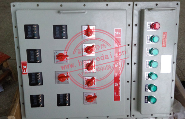 BXM防爆配電箱(柜)為鋁合金或鑄鐵殼體,靜電噴塑,符合GB3836.2-2000的防爆規定,供II類1區、2區防爆場所電伴熱產品配電用,具有過載、短路和漏電保護,分單相和三相,輸出1~12路。控溫形式分數顯溫控和BJW型溫控兩種。